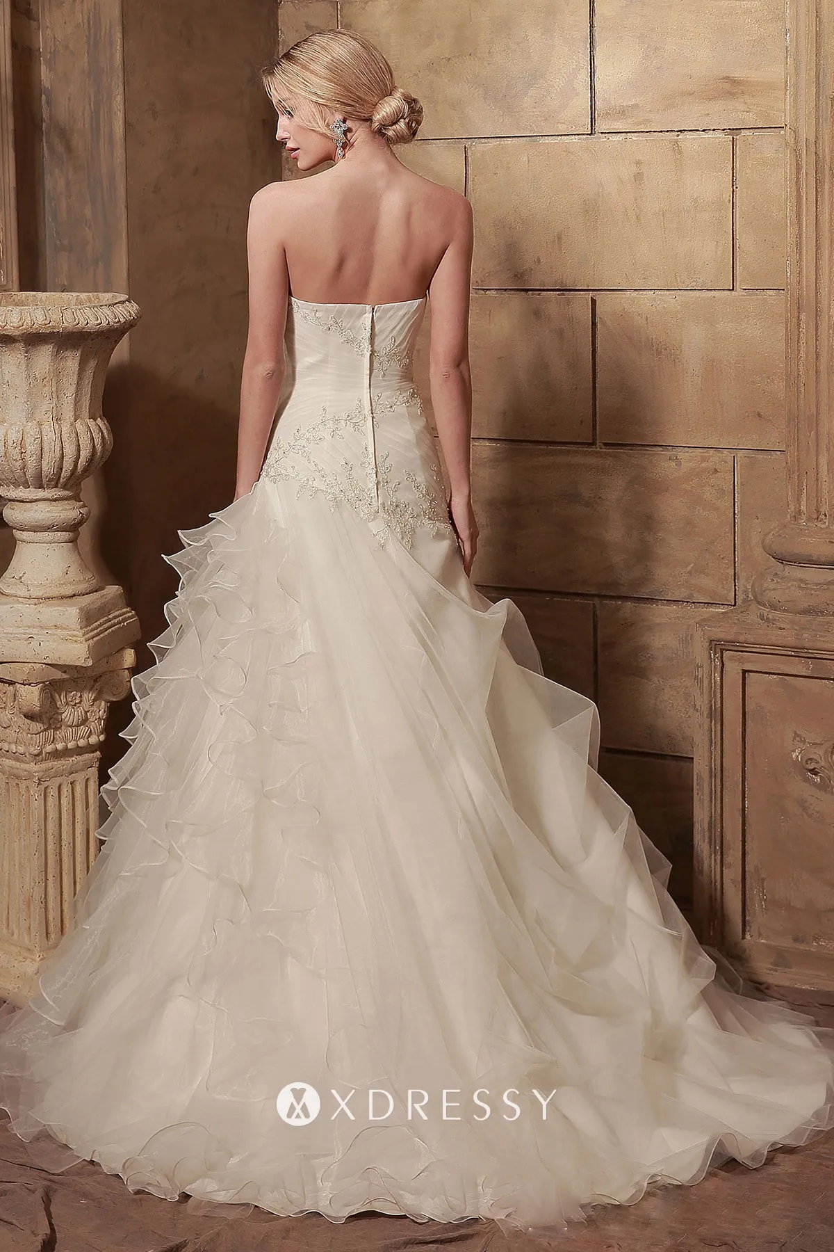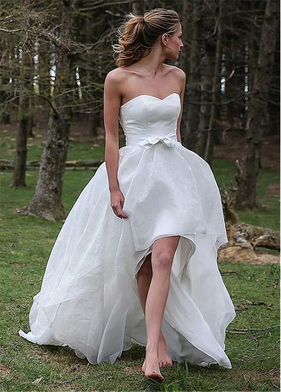 Pretty Organza Sweetheart Neckline A Line Hi Lo Wedding Dress With Pick Up Skirt Wedding Dresses