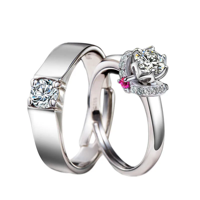 Amazon Com 4 Pcs 4 8ct Princess Cubic Zirconia Bride And Groom Pictures Of Bride And Groom Wedding Rings