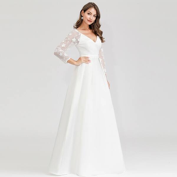 Shop Ever Pretty Womens Elegant V Neck Long Sleeve Wedding Dresses For Bride 00707 Overstock 30028597 Pictures Of Pretty Wedding Dresses