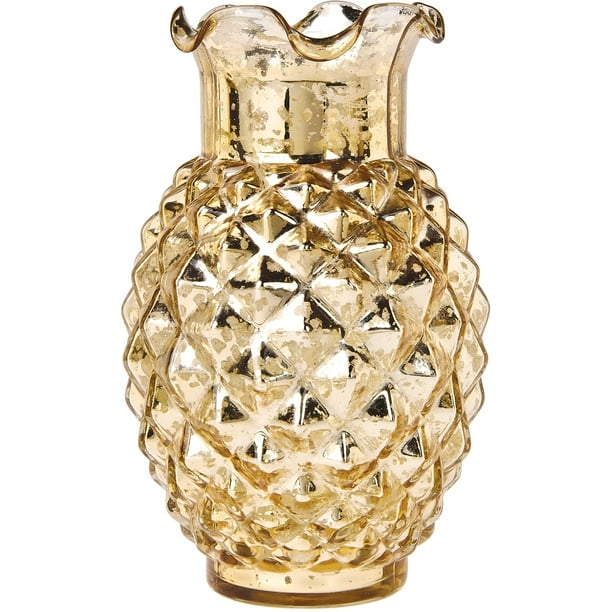 Luna Bazaar Vintage Mercury Glass Vase 6 Inch Willa Ruffled Pineapple Wedding Centerpieces