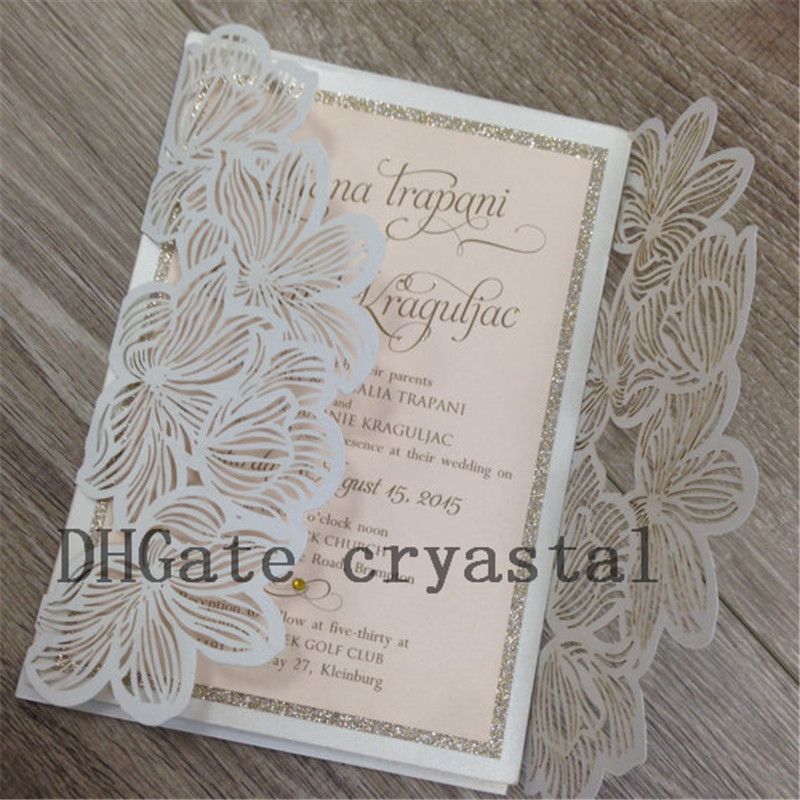 2018 Blush Pink Gold Glitter And White Laser Cut Floral Lace Invitation Fully Customizable Free Shipped By Ups Affordable Letterpress Wedding Invitations Arabic Wedding Invitations From Cryastal 1 47 Dhgate Com Pink And Gold Wedding Invitations