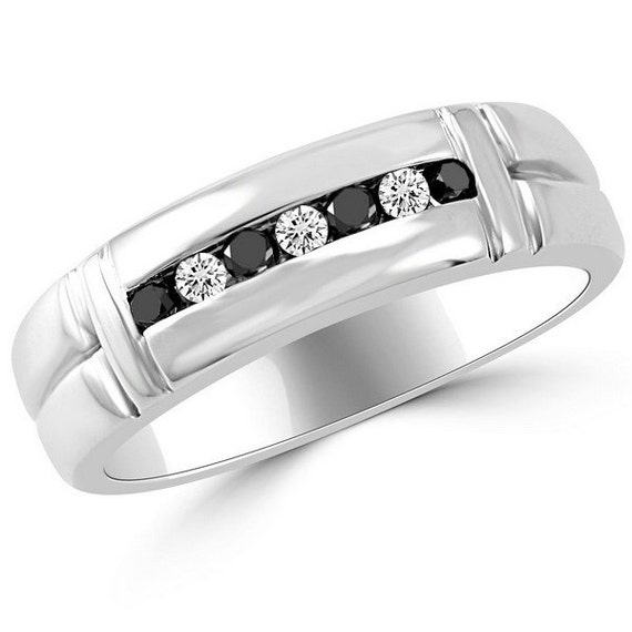 1 4 Carat Alternating Fancy Black White Diamond Wedding Band Etsy Pink And White Diamond Wedding Band