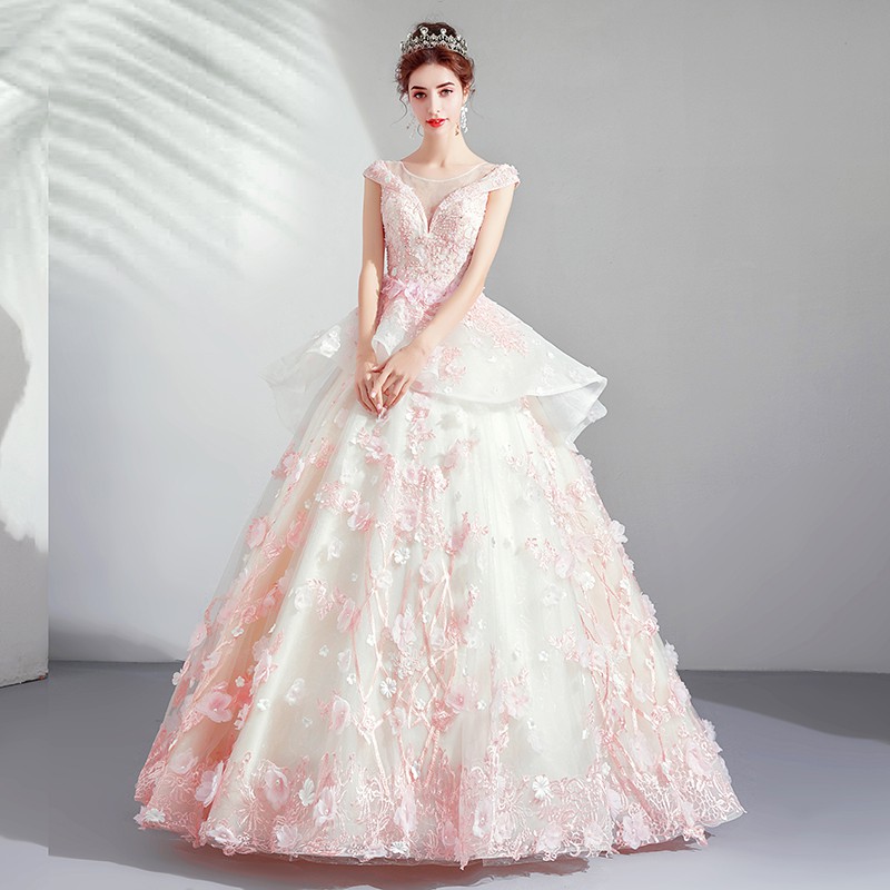 Pre Order Pink White Wedding Bridal Prom Dress Gown Rb1002 Shopee Singapore Pink And White Wedding Dresses