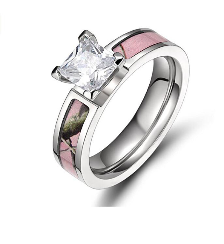 Shardon Pink Camo Ring Set Women Titanium 4 Prong Setting Cz Engagement Ring With Camo Wedding Band For Women 2pcs Pink Camo Rings Engagement Ringcz Engagement Ring Aliexpress Pink Camo Wedding Rings For Women