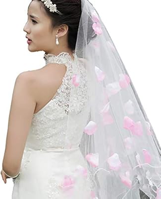 Haifly 3m White Mesh Wedding Bridal Veil Bride Veil With Pink Pink Flower Petal Wedding Dress