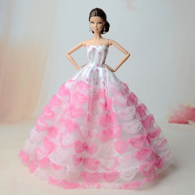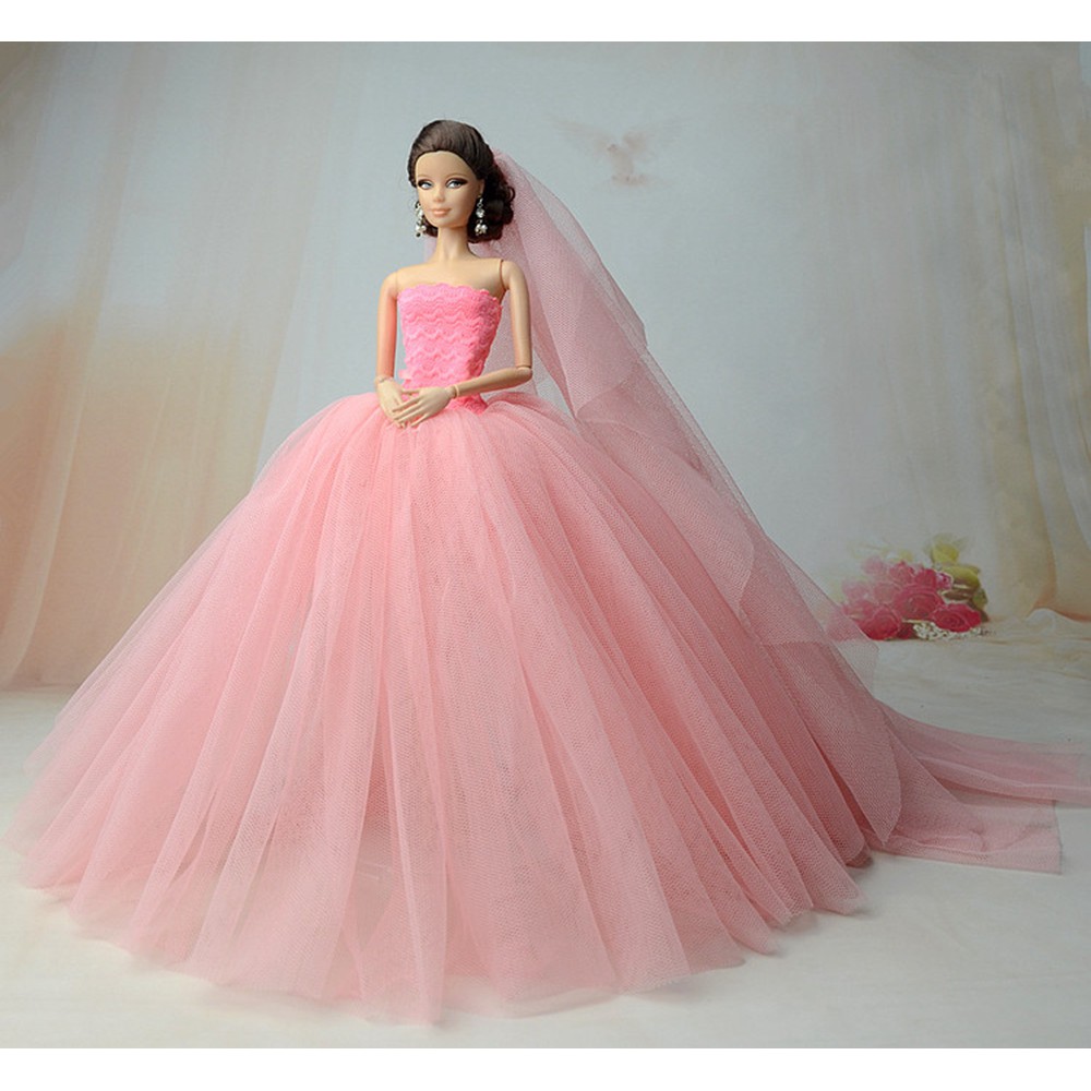 Pink Party Dresses Long Tail Evening Gown Clothes For Barbie Doll Pink Wedding Dress Barbie Doll