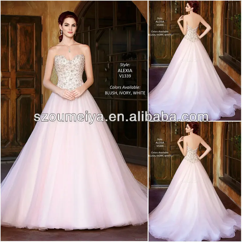 Bling Bling Sequin Wedding Dress Long Sleeves Ball Gown Alinanova Pink Wedding Dress Bling