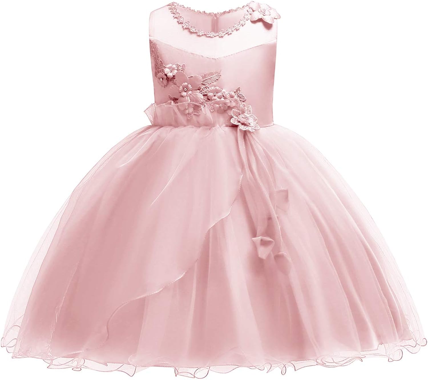 Amazon Com Joymom Girls Flower Embroidery Ruffles Party Wedding Dresses Kids Ball Gown Clothing Pink Wedding Dress For Kids
