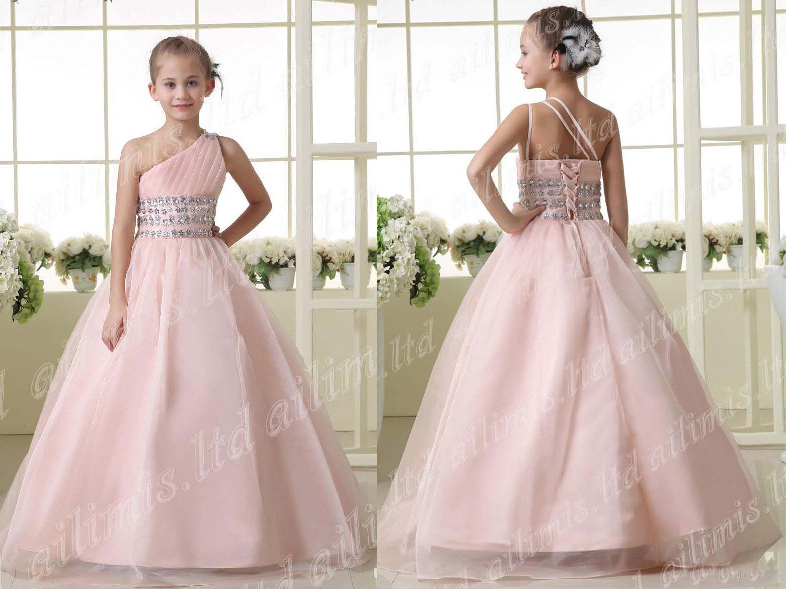 Blush Pink Open Back Flower Girl Dresses Sparkly Long Girl Formal Wedding Dress Kids Party Birthday Pageant Gown Pink Wedding Dress For Kids