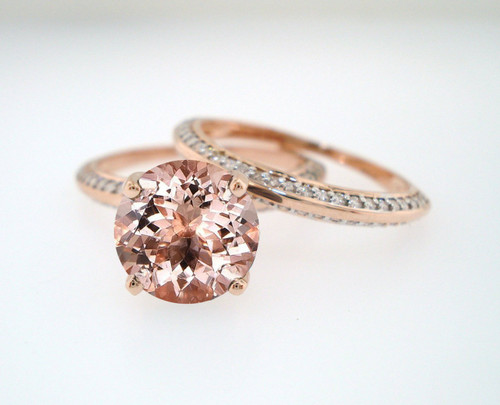 2 Ct Round Cut Diamond Side Pink Diamond Engagement Ring Set 925 Pink Wedding Ring Sets