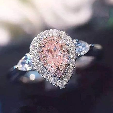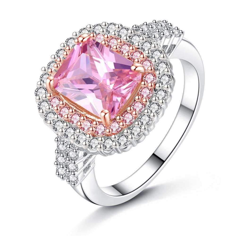 Luxury Big Light Blue Pink Zircon Wedding Rings For Women Top Pink Wedding Rings For Women