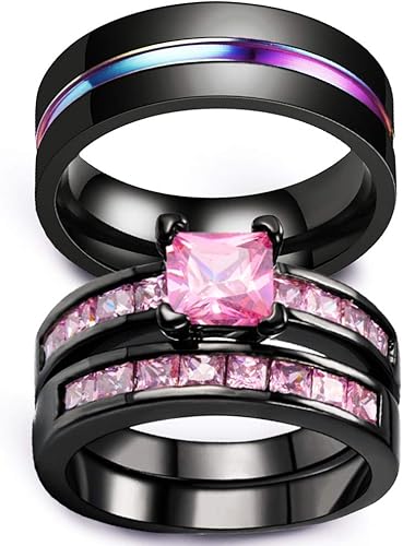 Unique Exclusive Handmade Fashion Jewelry Rings For Men Women Pink Wedding Rings Sets