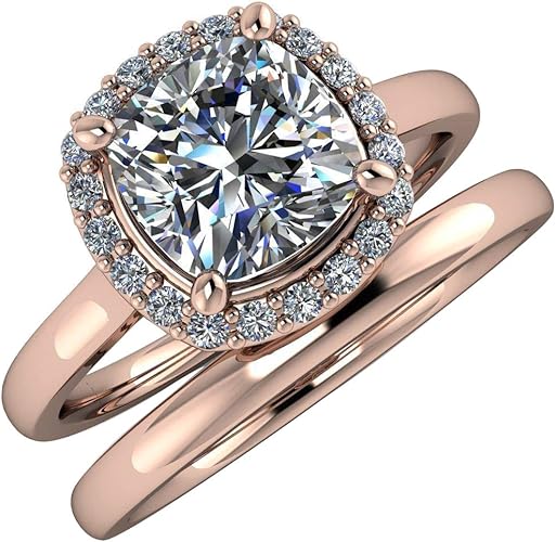 Forever Brilliant Moissanite Bridal Set 7x9mm Oval Solitaire Plain Engagement Ring With Diamond Wedding Band