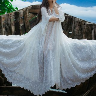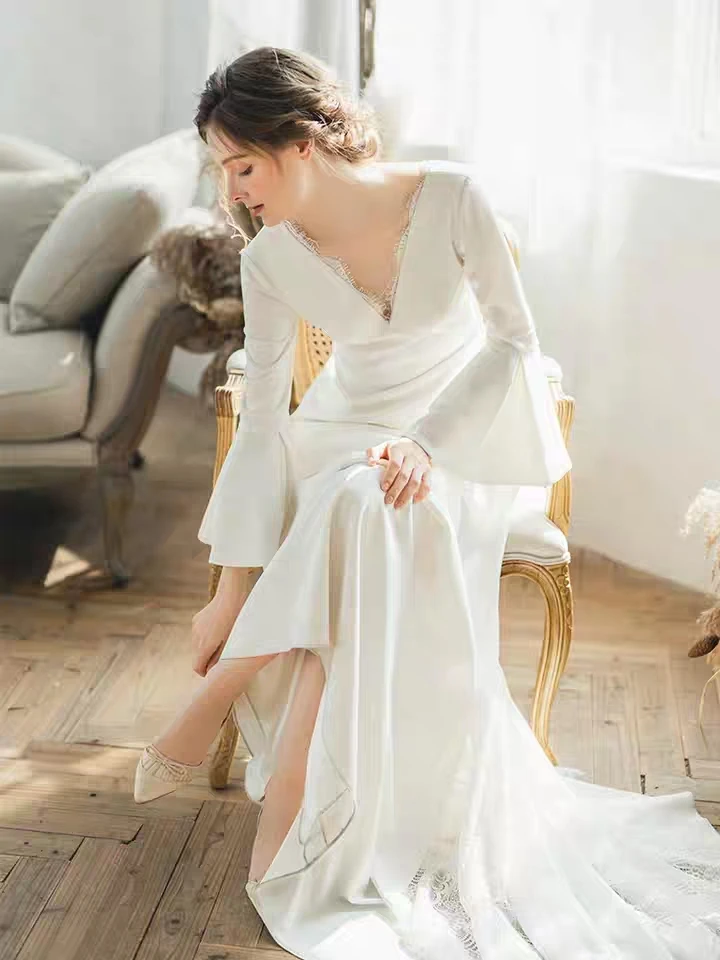 Maternity Plain Lace Long Sleeve Slash Neck V Neck Layered Dress Chicfance Plain Lace Wedding Dress