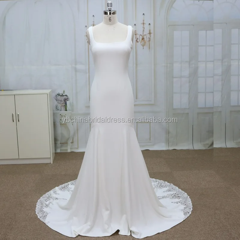 Simple Lace Spaghetti Strap Open Back Mermaid Wedding Dress Plain Mermaid Wedding Dresses