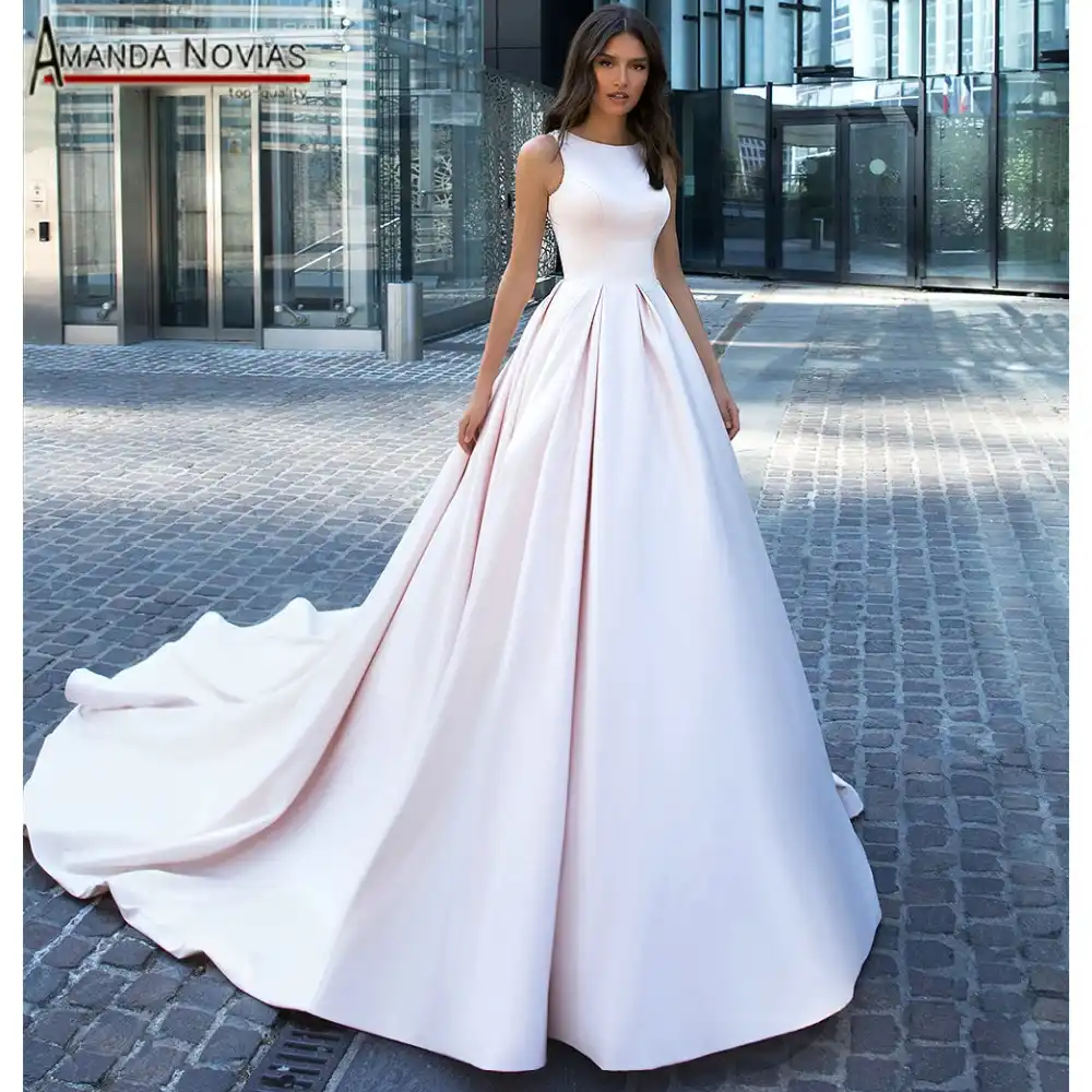 Discount 2020 Cheap Vintage Wedding Dresses Boat Neck Sweep Train Long Sleeve Wedding Gowns Plain Satin Bridal Gowns Robe De Maria Buttons Back Wedding Gowns With Sleeves Weddingdress From David 9512 124 83 Dhgate Com Plain Wedding Dresses 2020