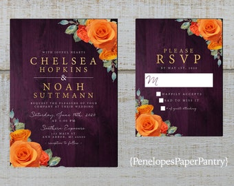 Autumn Gold Burgundy Plum Floral Wedding Invitations Invites Plum And Orange Wedding Invitations