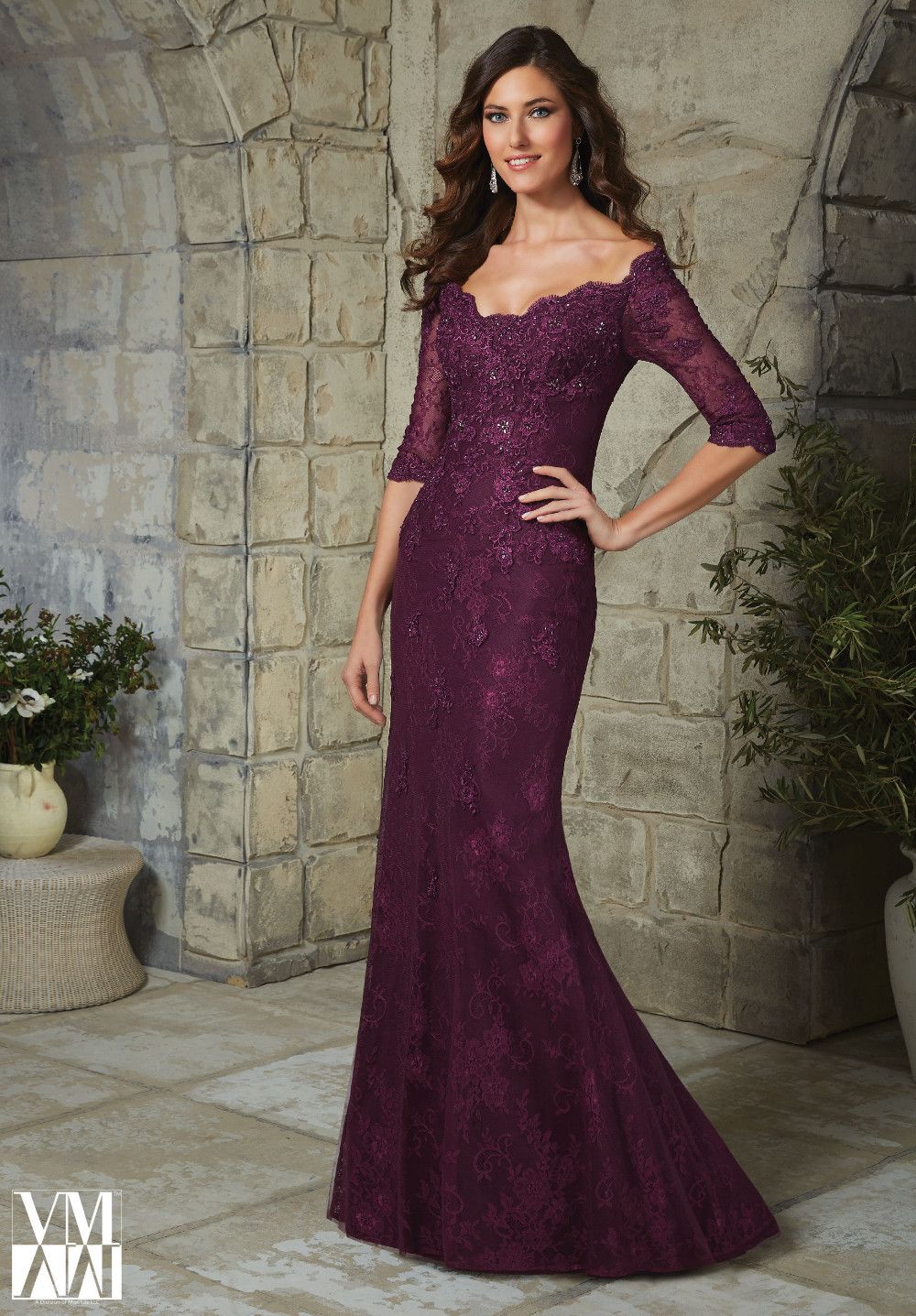 Elegant Plus Size Half Sleeve Plum Lace Mother Of The Bride Plum Color Dress For Wedding