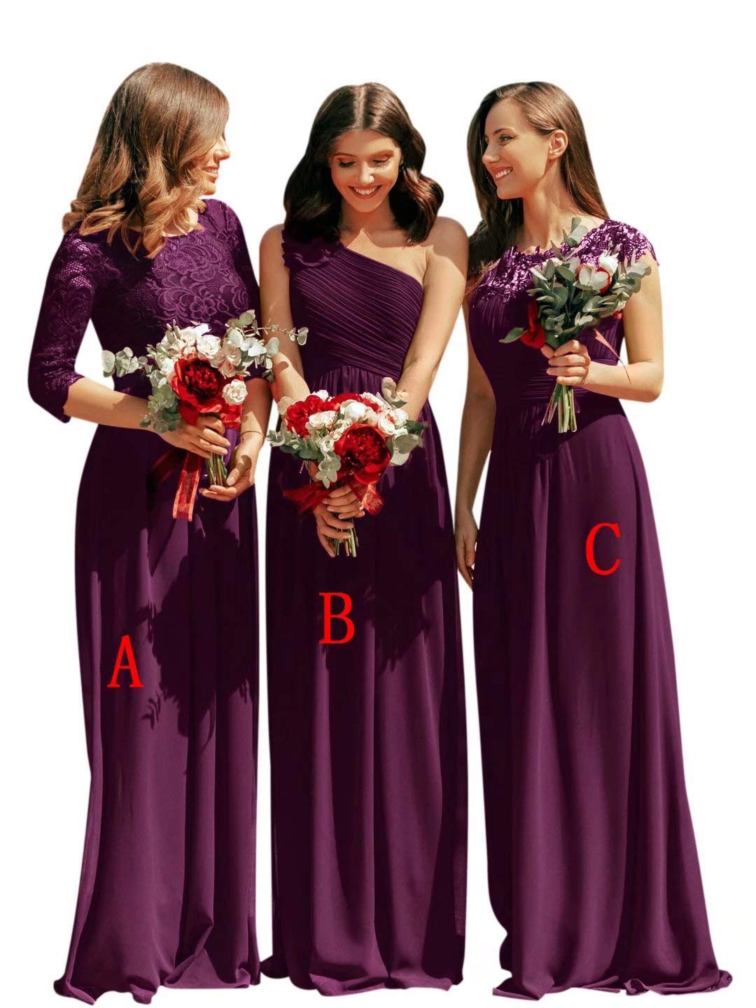 Vinbridal 2019 Women S Long Chiffon Lace Bridesmaid Dresses Plum Dresses For Weddings