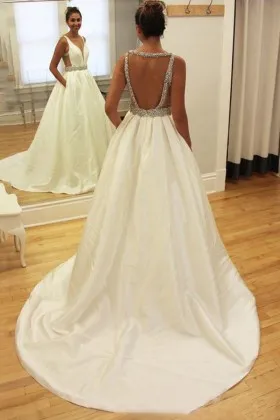 Plunging Neckline Wedding Dresses Plunge V Neck Bridal Gowns Vq Plunging Back Wedding Dress