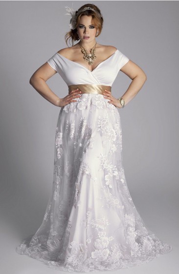 Off The Shoulder Midi Cap Sleeve Lace Chiffon Wedding Dress June Plus Size Beach Dresses For Weddings