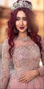Best Selling Arab Beaded Luxury Long Tail Plus Size Princess Puffy Plus Size Blush Pink Wedding Dress