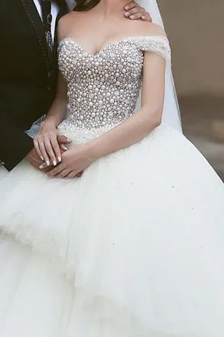 Embroidered Lace Appliques On Tulle Ball Gown With Scalloped Plus Size Cinderella Wedding Dresses