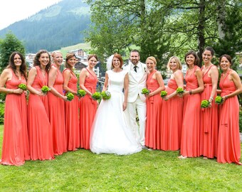Maxi Plus Size Coral Bridesmaid Dress Convertible Dress Infinity Plus Size Coral Wedding Dresses