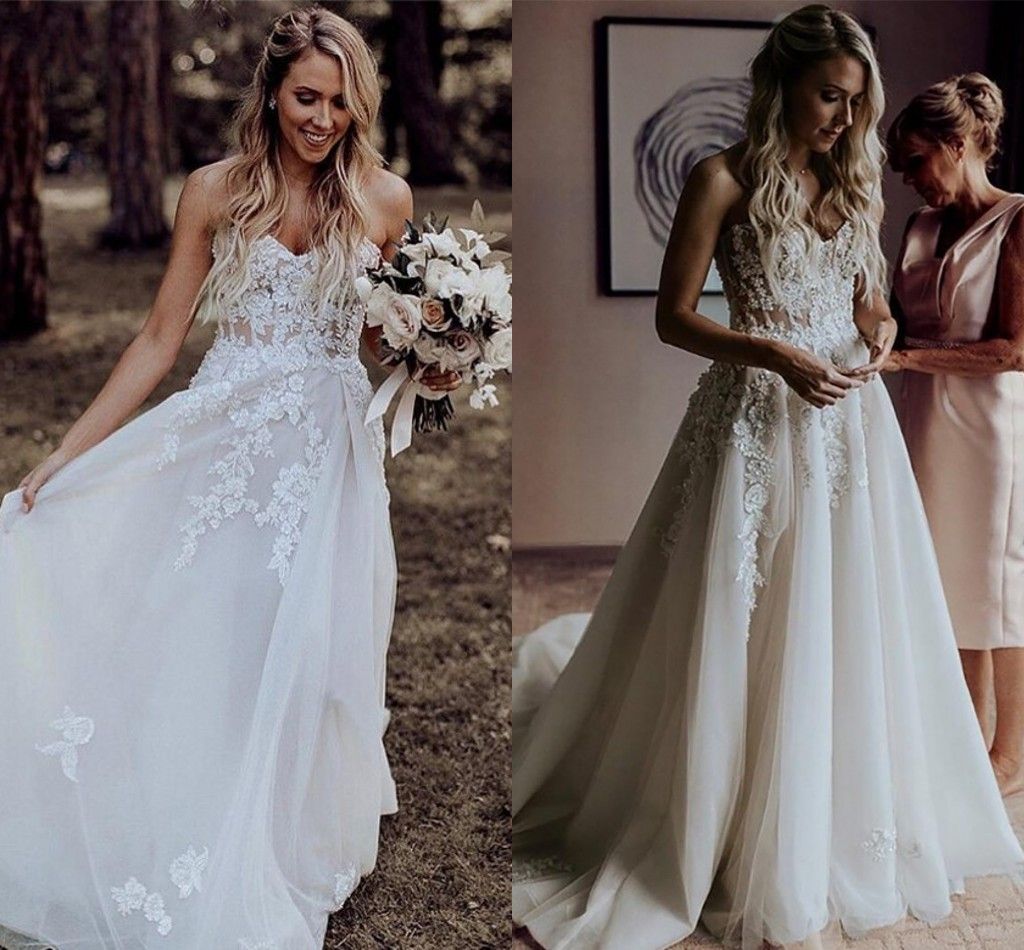 Discount Bohemian Country Style A Line Wedding Dresses Exquisite 3d Lace Appliques Tulle Bridal Gown Plus Size Sweetheart Backless Vestidos Al3140 A Line Style Plus Size Country Style Wedding Dresses With Boots