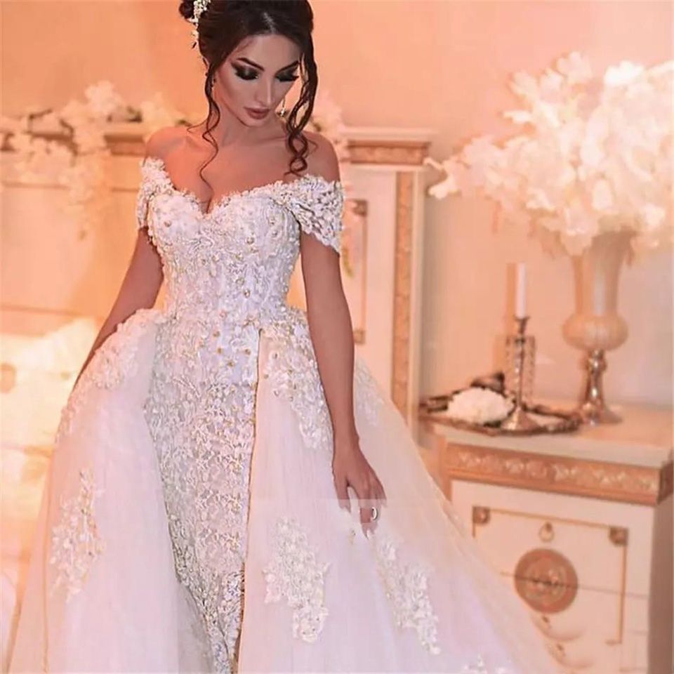 Discount Luxury Arabic Wedding Dresses With Detachable Skirt Plus Size Detachable Skirt Wedding Dress