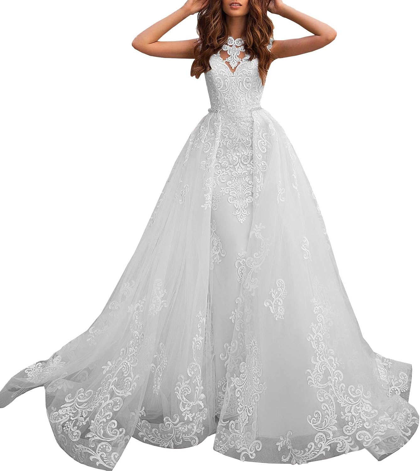 Luxury 2020 Arabic Dubai Mermaid Wedding Dresses Detachable Train Plus Size Detachable Train Wedding Dress