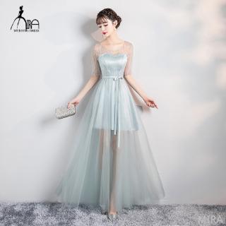 Lace Elegant Long Formal Sister Prom Junior Champagne Dusty Blue Plus Size Dusty Blue Wedding Dress