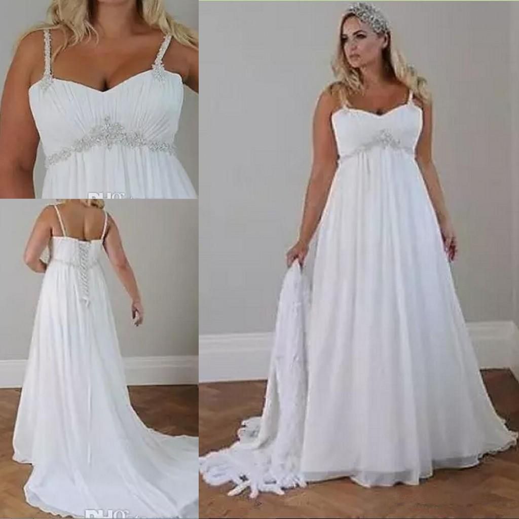 Discount Crystals Plus Size Beach Wedding Dresses 2019 Corset Back Plus Size Empire Wedding Dress