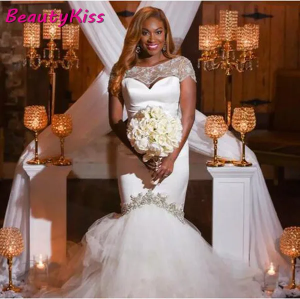 Big Sale Ab14 2019 South African Nigerian Wedding Dresses Plus Plus Size Fishtail Wedding Dress