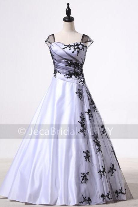 Kivary Gothic Gray Tulle Long Black Lace Sheer Bateau Prom Wedding Plus Size Gothic Plus Size Purple Wedding Dress