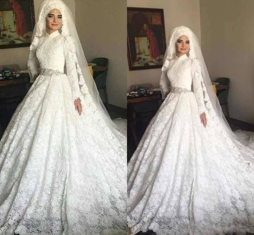 Cheap White Plus Size Lace Ball Gown Wedding Dresses High Neck Plus Size Long Sleeve High Neck Wedding Dresses