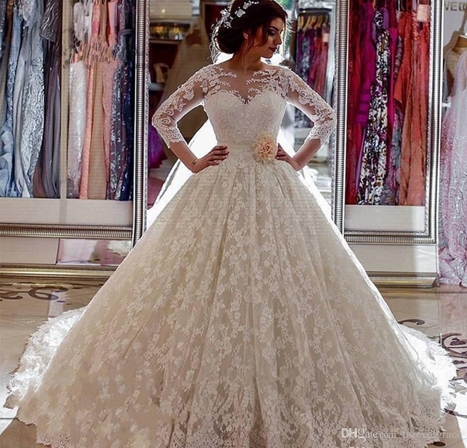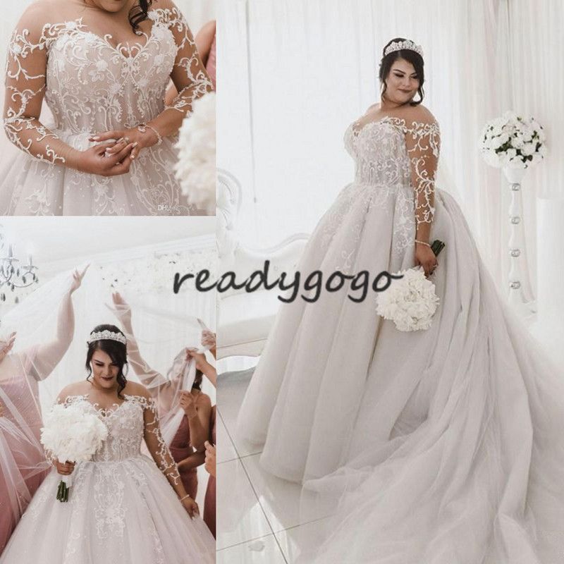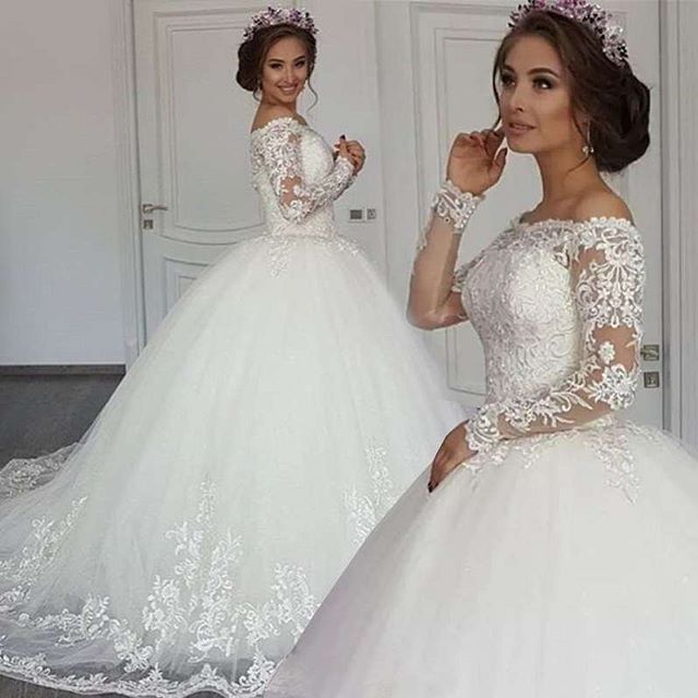 Best Discount 6440 2020 Elegant Long Sleeve Wedding Dresses Plus Size Long Sleeve Princess Wedding Dress