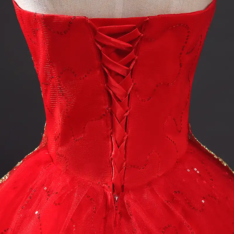Red Retro Korean Style Big Long Train Wedding Dress Vestidos De Plus Size Long Train Plus Size Red Wedding Dresses