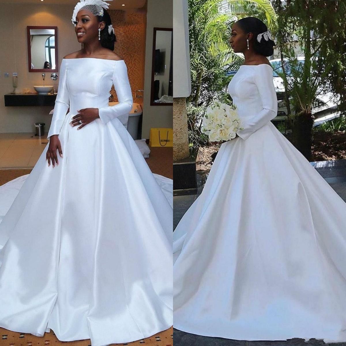 Discount Plus Size African Satin Wedding Dresses Off The Shoulder Plus Size Satin Wedding Dresses With Sleeves