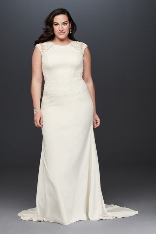 Allover Lace V Neck Plus Size Sheath Wedding Dress David S Bridal Plus Size Sheath Wedding Dress