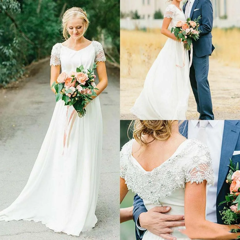 Robe De Soiree Short Sleeve Satin Sheath Beach Wedding Dresses Plus Size Short Country Wedding Dresses
