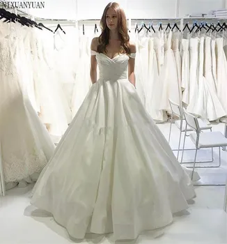 Elegant White Satin Wedding Dresses 2020 A Line Off Shoulder Plus Plus Size Simple And Elegant Wedding Dresses