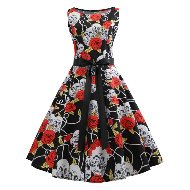 Retro Vintage Style Vietnam Wedding Dress Sleeveless 3d Skull Plus Size Skull Wedding Dress