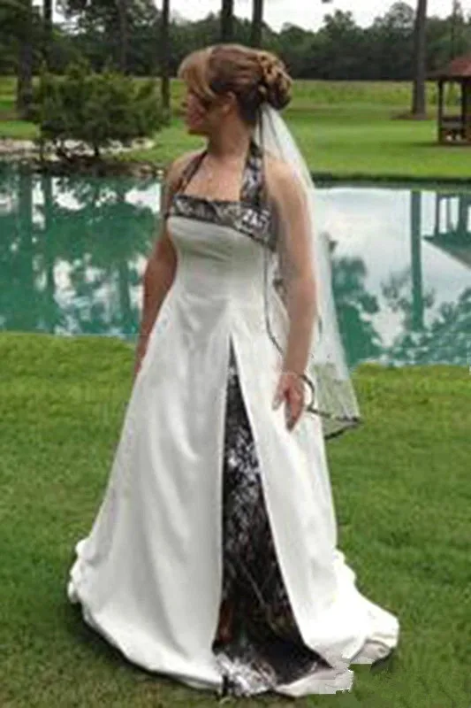 2019 Country Style Camo Wedding Dresses Halter A Line Sweep Train Plus Size Wedding Dresses Camo