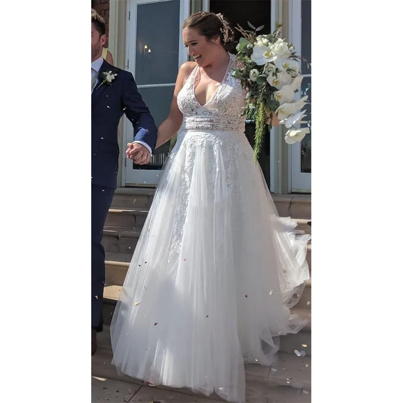 Vintage Champagne Lace Boho Wedding Dress 2020 Rustic Backless Plus Size Wedding Dresses Country Style