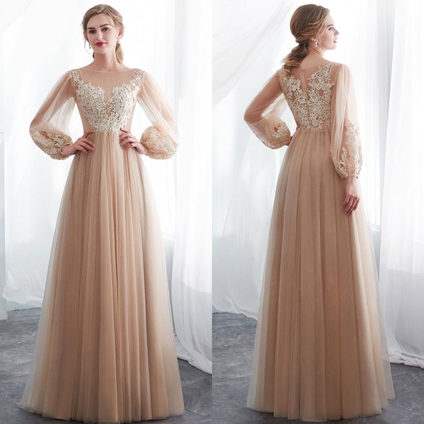 Newest Wedding Dresses With Long Poet Sleeves V Neck Chiffon A Poet Sleeve Wedding Dress