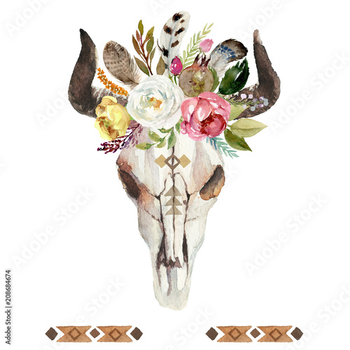 Geometric Watercolor Floral Boho Illustration With Skull Horns Pomegranate Wedding Invitations stock.adobe.com