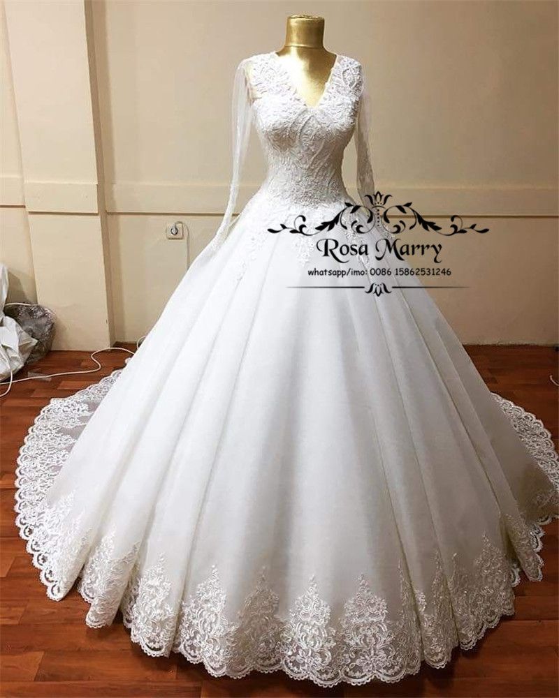 Princess Ball Gown Lace Wedding Dresses 2020 Long Sleeves Plus Poofy Wedding Dresses With Long Trains