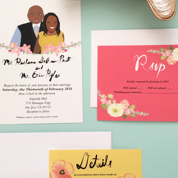 Unique Custom Illustration Portrait Wedding Invitation Sarah Hearts Portrait Wedding Invitations