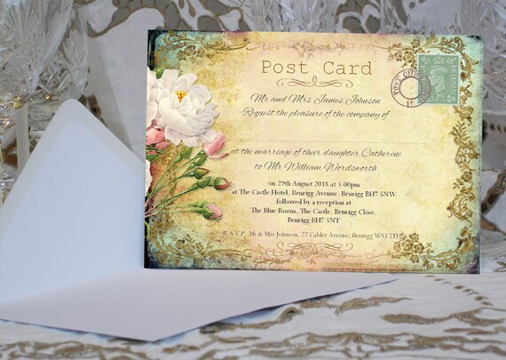 Vintage Photo Postcard Wedding Invitation By Feel Good Wedding Postcard Wedding Invites
